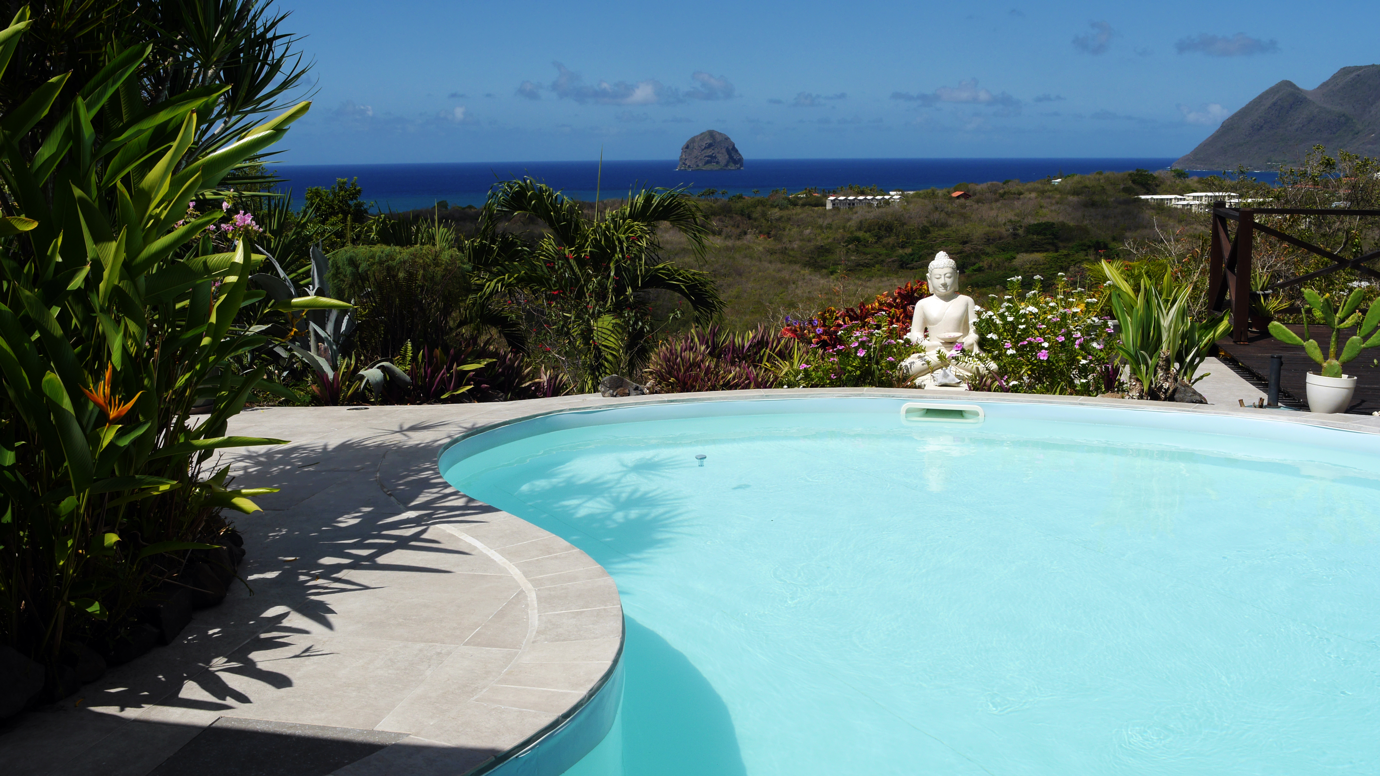 Calme et sérénité devant la vue sur la piscine, le carbet et la mer des caraïbes !