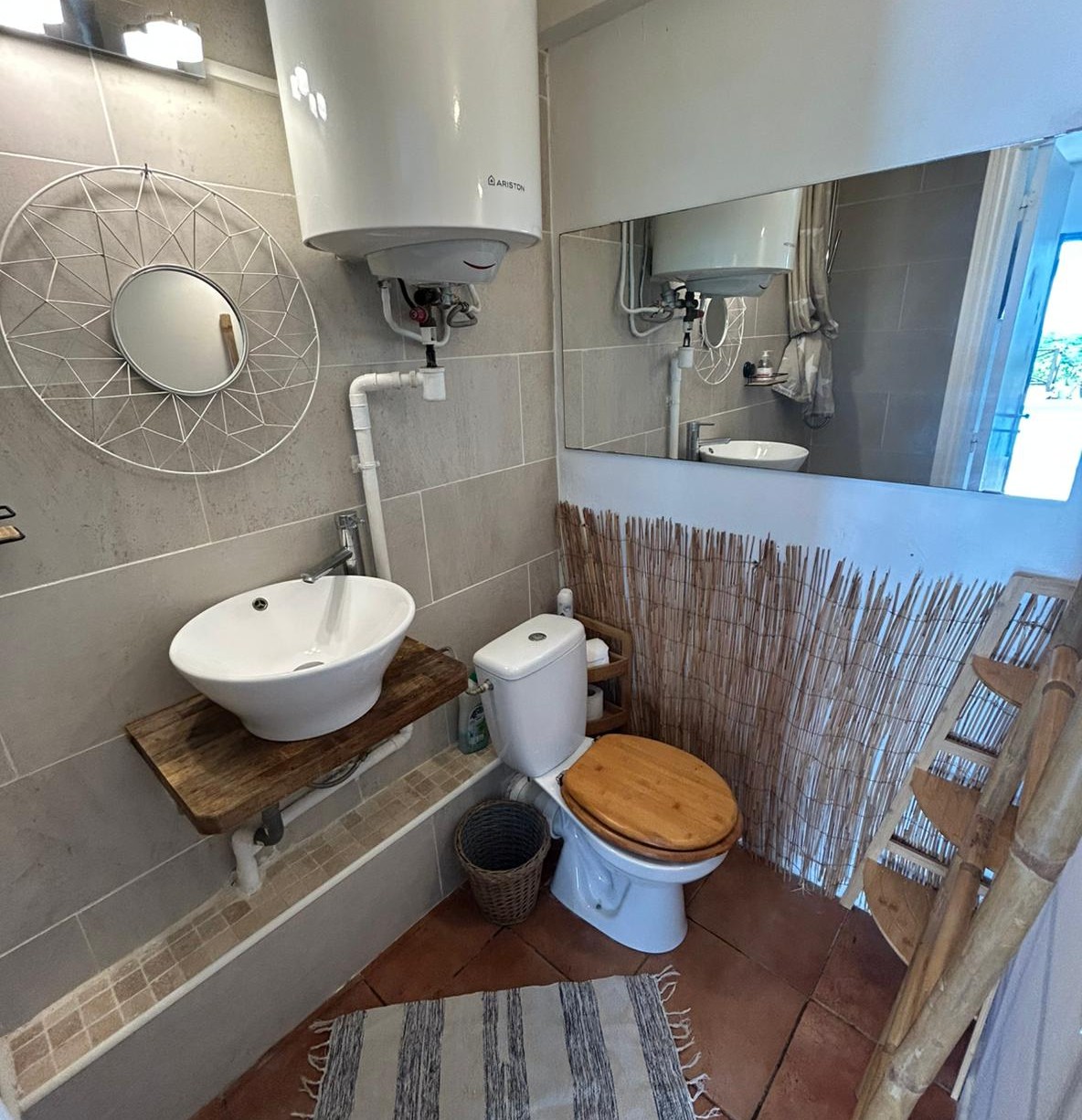 La kitchenette entièrement aménagée et équipée (four, four micro ondes, cafetière napolitaine (café moulu), grille pain, réfrigérateur avec congélateur, plaques vitrocéramique, ustensiles et vaisselle) vous permettra de vous sentir comme chez vous. Vous pourrez profiter de vos repas à l’extérieur sur votre terrasse.