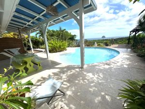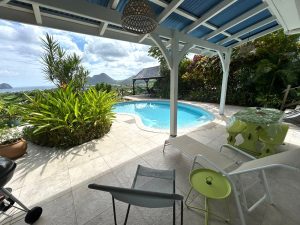 Calme et sérénité devant la vue sur la piscine, le carbet et la mer des caraïbes !